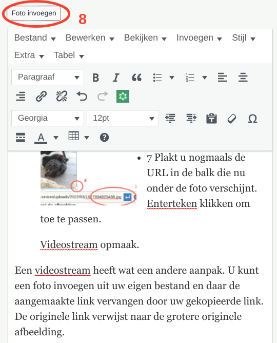 8 Een videostream heeft wat een andere aanpak. U kunt een foto invoegen uit uw eigen bestand en daar de aangemaakte link vervangen door uw gekopieerde link van de videostream. De originele link verwijst naar de grotere originele afbeelding. Die vervangt u dan met uw videostream.- U kunt ook dit icoon downloaden en dan gebruiken voor uw eigen video-icoontje.